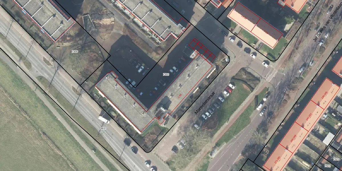 Het perceel waarop Moreelsestraat 26 staat heeft een oppervlakte van 2827 m². Dit is een zeer groot perceel. De perceeloppervlakte wordt geregistreerd door het Kadaster. Gedetailleerde informatie over de maten van dit perceel kunt u vinden in het rapport Kadastrale kaart met maatvoering van Moreelsestraat 26.
