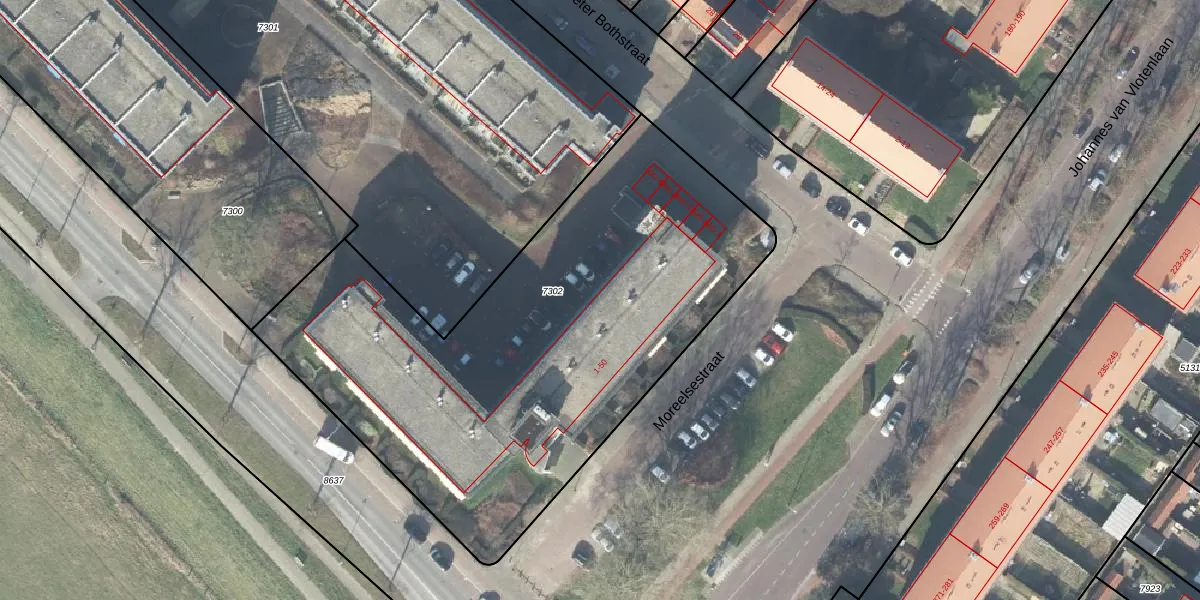 Het perceel waarop Moreelsestraat 34 staat heeft een oppervlakte van 2827 m². Dit is een zeer groot perceel. De perceeloppervlakte wordt geregistreerd door het Kadaster. Gedetailleerde informatie over de maten van dit perceel kunt u vinden in het rapport Kadastrale kaart met maatvoering van Moreelsestraat 34.