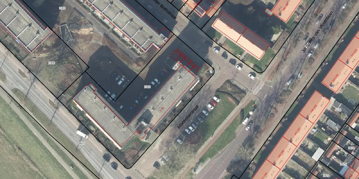 Het perceel waarop Moreelsestraat 42 staat heeft een oppervlakte van 2827 m². Dit is een zeer groot perceel. De perceeloppervlakte wordt geregistreerd door het Kadaster. Gedetailleerde informatie over de maten van dit perceel kunt u vinden in het rapport Kadastrale kaart met maatvoering van Moreelsestraat 42.