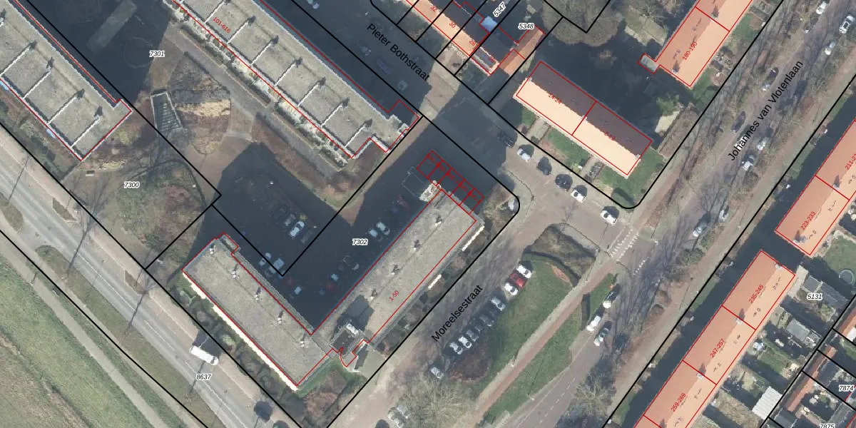 Het perceel waarop Moreelsestraat 43 staat heeft een oppervlakte van 2827 m². Dit is een zeer groot perceel. De perceeloppervlakte wordt geregistreerd door het Kadaster. Gedetailleerde informatie over de maten van dit perceel kunt u vinden in het rapport Kadastrale kaart met maatvoering van Moreelsestraat 43.