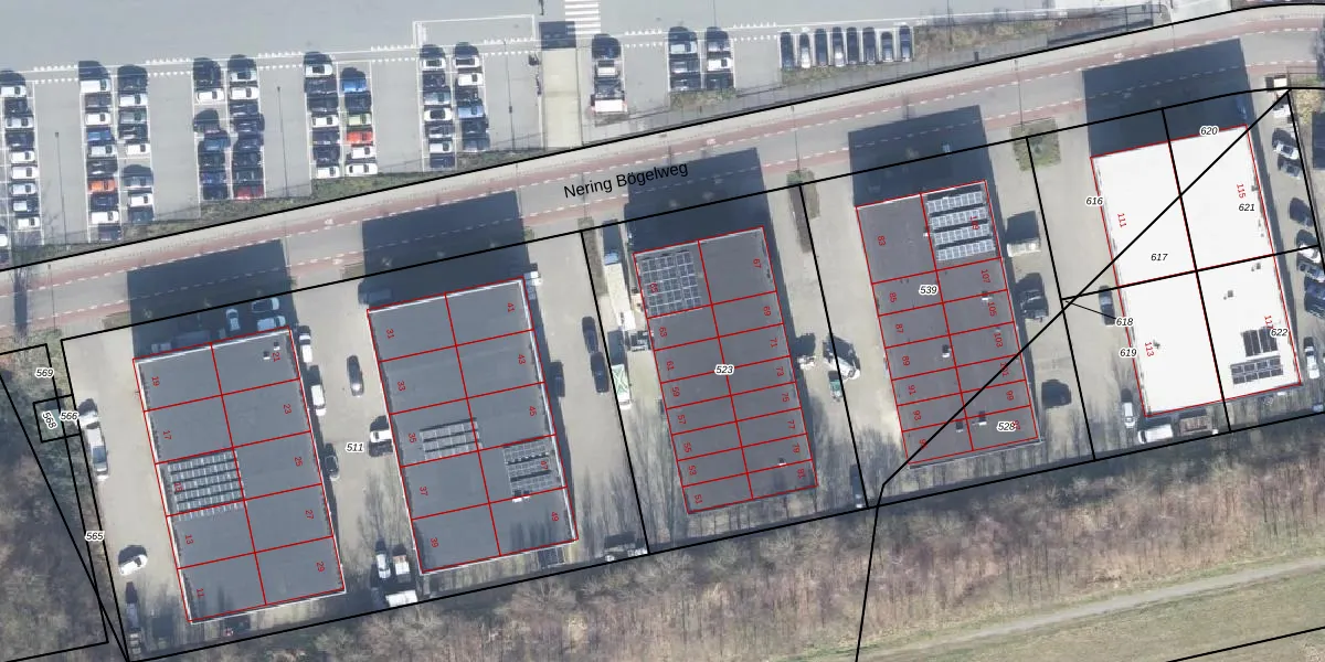 Het perceel waarop Nering Bögelweg 63 staat heeft een oppervlakte van 1684 m². Dit is een zeer groot perceel. De perceeloppervlakte wordt geregistreerd door het Kadaster. Gedetailleerde informatie over de maten van dit perceel kunt u vinden in het rapport Kadastrale kaart met maatvoering van Nering Bögelweg 63.
