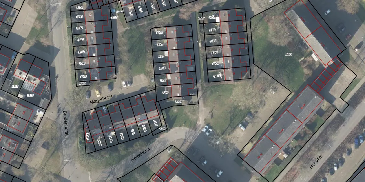 Gebruik de zoekbalk of klik op een perceel voor informatie over de adressen binnen dit perceel.