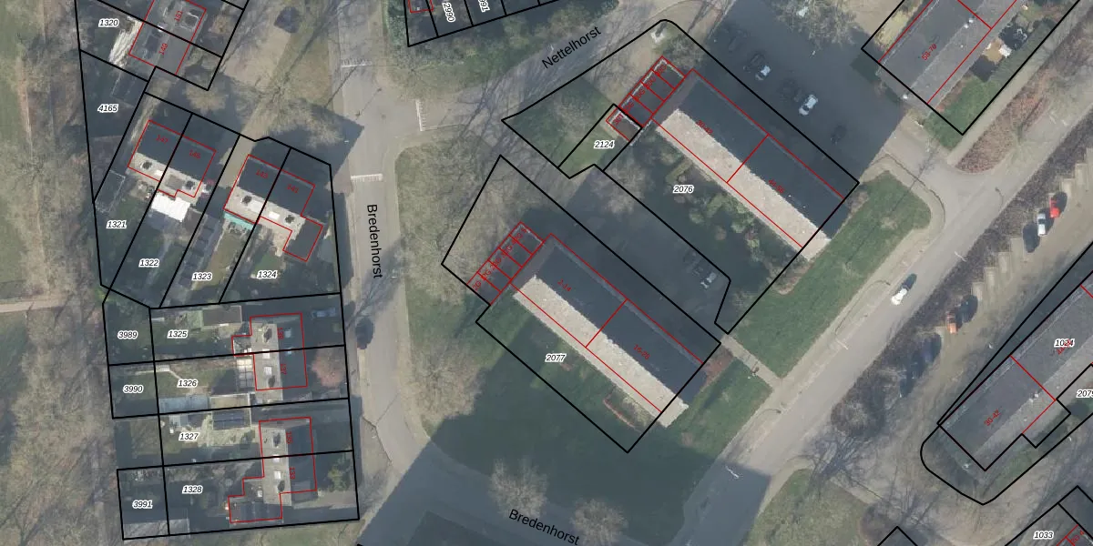Het perceel waarop Nettelhorst 6 staat heeft een oppervlakte van 1258 m². Dit is een zeer groot perceel. De perceeloppervlakte wordt geregistreerd door het Kadaster. Gedetailleerde informatie over de maten van dit perceel kunt u vinden in het rapport Kadastrale kaart met maatvoering van Nettelhorst 6.