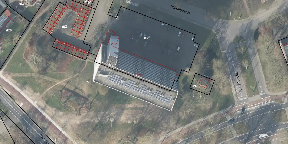 Het perceel waarop Nijhoffgaarde 117 staat heeft een oppervlakte van 2993 m². Dit is een zeer groot perceel. De perceeloppervlakte wordt geregistreerd door het Kadaster. Gedetailleerde informatie over de maten van dit perceel kunt u vinden in het rapport Kadastrale kaart met maatvoering van Nijhoffgaarde 117.