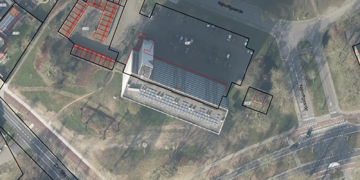 Het perceel waarop Nijhoffgaarde 129 staat heeft een oppervlakte van 2993 m². Dit is een zeer groot perceel. De perceeloppervlakte wordt geregistreerd door het Kadaster. Gedetailleerde informatie over de maten van dit perceel kunt u vinden in het rapport Kadastrale kaart met maatvoering van Nijhoffgaarde 129.