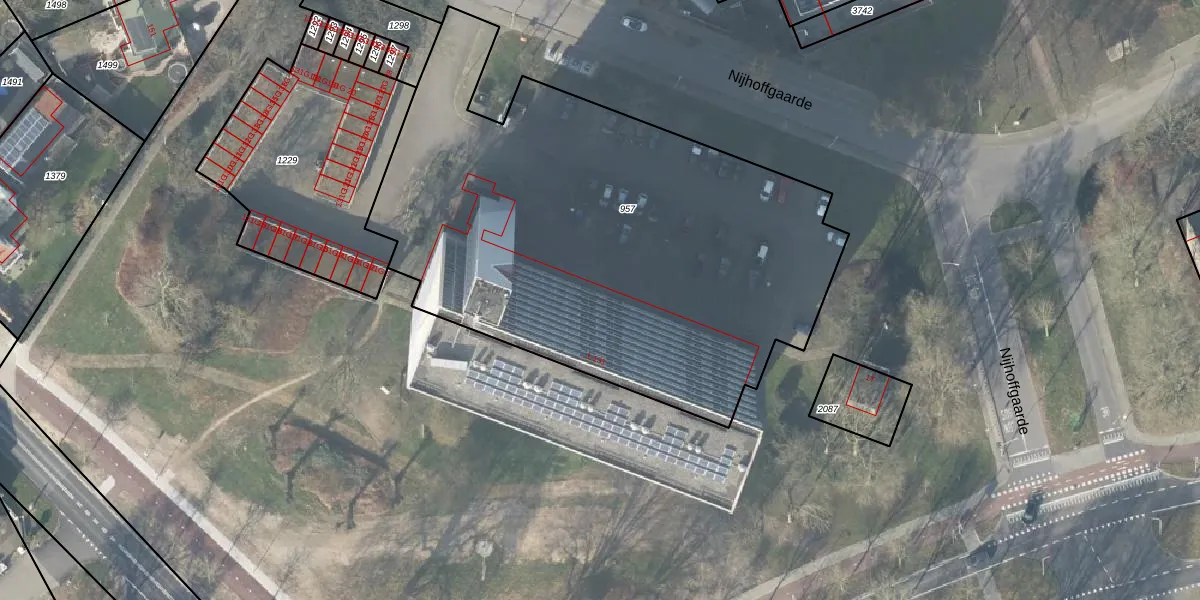 Het perceel waarop Nijhoffgaarde 17 staat heeft een oppervlakte van 2993 m². Dit is een zeer groot perceel. De perceeloppervlakte wordt geregistreerd door het Kadaster. Gedetailleerde informatie over de maten van dit perceel kunt u vinden in het rapport Kadastrale kaart met maatvoering van Nijhoffgaarde 17.
