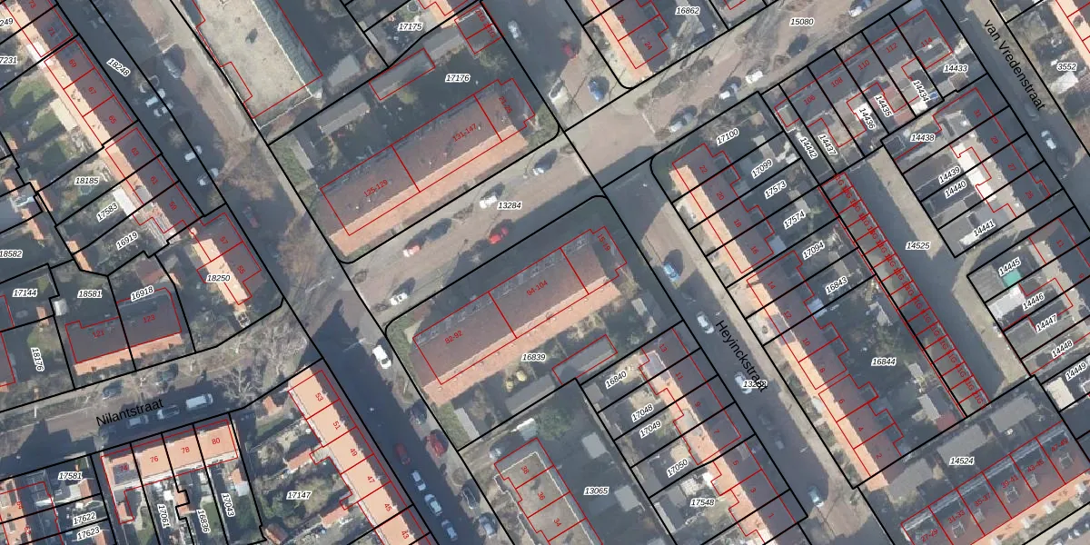Het perceel waarop Nilantstraat 100 staat heeft een oppervlakte van 1302 m². Dit is een zeer groot perceel. De perceeloppervlakte wordt geregistreerd door het Kadaster. Gedetailleerde informatie over de maten van dit perceel kunt u vinden in het rapport Kadastrale kaart met maatvoering van Nilantstraat 100.