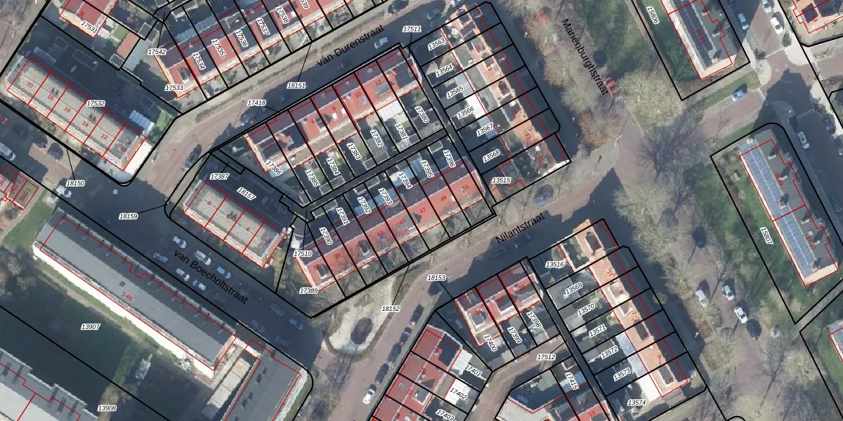 Gebruik de zoekbalk of klik op een perceel voor informatie over de adressen binnen dit perceel.