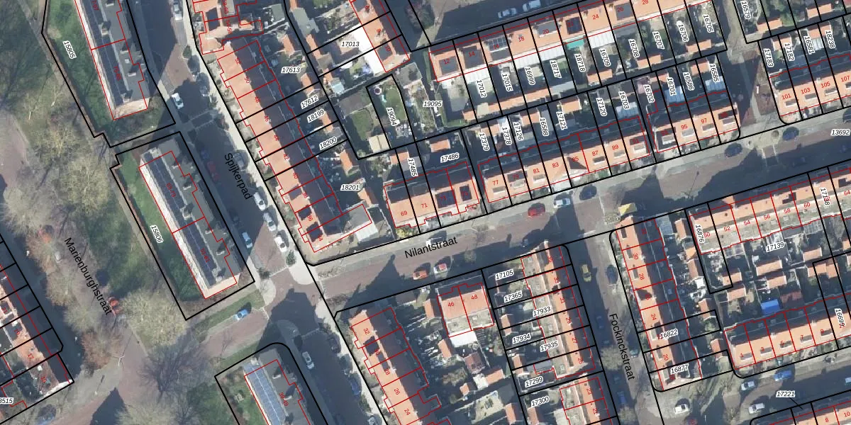 Gebruik de zoekbalk of klik op een perceel voor informatie over de adressen binnen dit perceel.
