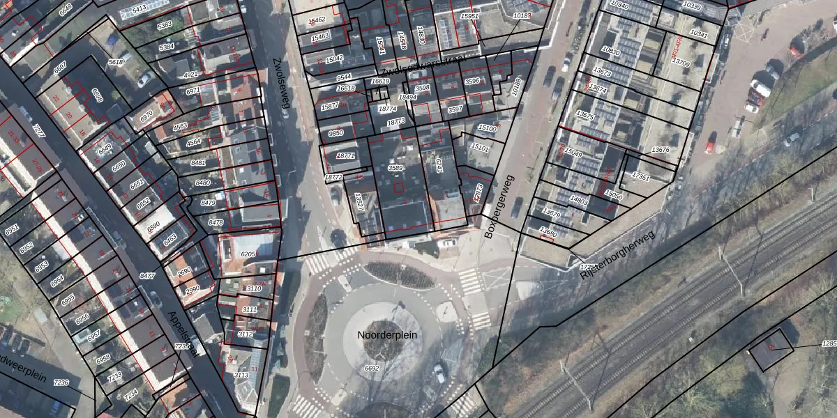 Noorderplein 5-B is gelegen op kadastraal perceel DVT00B3589. Deze kadastrale aanduiding is uniek en wordt gebruikt door het Kadaster om eigendomsrechten en andere zakelijke rechten vast te leggen. Het perceel maakt onderdeel uit van de kadastrale gemeente Deventer.