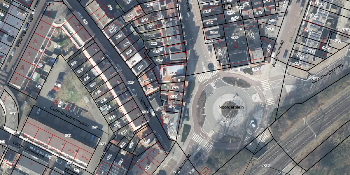 Het perceel waarop Noorderplein 7-A staat heeft een oppervlakte van 62 m². Dit is een klein perceel. De perceeloppervlakte wordt geregistreerd door het Kadaster. Gedetailleerde informatie over de maten van dit perceel kunt u vinden in het rapport Kadastrale kaart met maatvoering van Noorderplein 7-A.