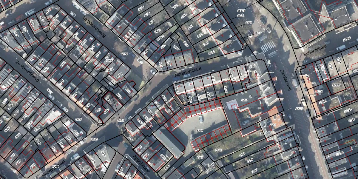 Noorderstraat 15 is gelegen op kadastraal perceel DVT00A6967. Deze kadastrale aanduiding is uniek en wordt gebruikt door het Kadaster om eigendomsrechten en andere zakelijke rechten vast te leggen. Het perceel maakt onderdeel uit van de kadastrale gemeente Deventer.