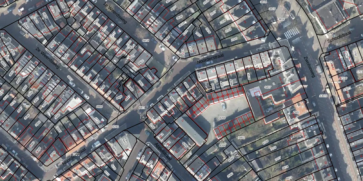 Het perceel waarop Noorderstraat 21 staat heeft een oppervlakte van 71 m². Dit is een klein perceel. De perceeloppervlakte wordt geregistreerd door het Kadaster. Gedetailleerde informatie over de maten van dit perceel kunt u vinden in het rapport Kadastrale kaart met maatvoering van Noorderstraat 21.