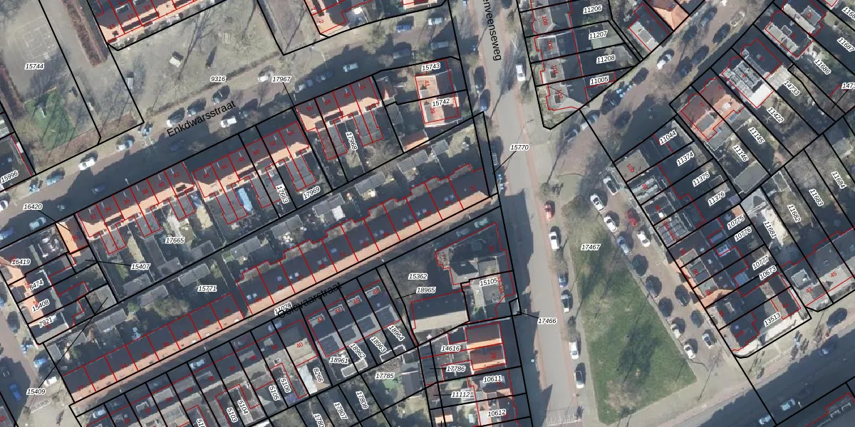 Het adres is gelegen op perceel 15771 in de sectie B en de kadastrale gemeente Deventer. De kadastrale aanduiding is aldus DVT00-B-15771. De oppervlakte van het perceel is 1930 m². Dat is groter dan gemiddeld in Deventer, waar de gemiddelde perceeloppervlakte op 1300,45 m² ligt. Het kleinste perceel in de kadastrale gemeente is 0 m² groot. De grootste perceeloppervlakte is 59,4 ha. Op het perceel liggen in totaal 19 adressen. De huidige grenzen van het perceel zijn digitaal in de Basisregistratie Kadaster (BRK) geregistreerd op 22-08-2014.