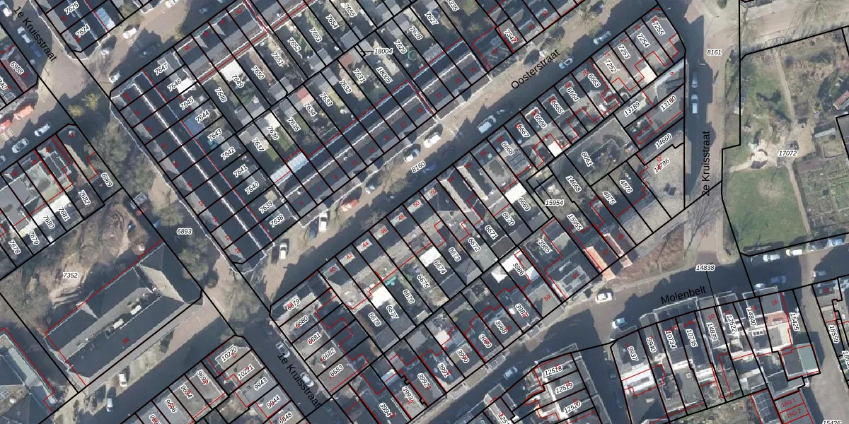 Gebruik de zoekbalk of klik op een perceel voor informatie over de adressen binnen dit perceel.