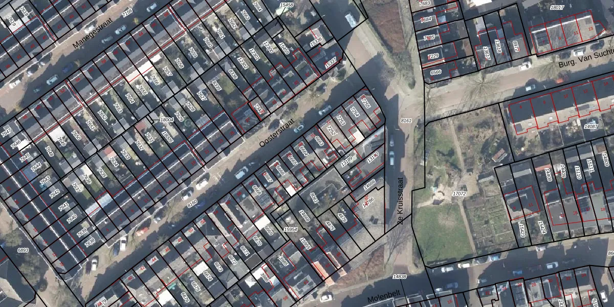Het perceel waarop Oosterstraat 68 staat heeft een oppervlakte van 67 m². Dit is een klein perceel. De perceeloppervlakte wordt geregistreerd door het Kadaster. Gedetailleerde informatie over de maten van dit perceel kunt u vinden in het rapport Kadastrale kaart met maatvoering van Oosterstraat 68.