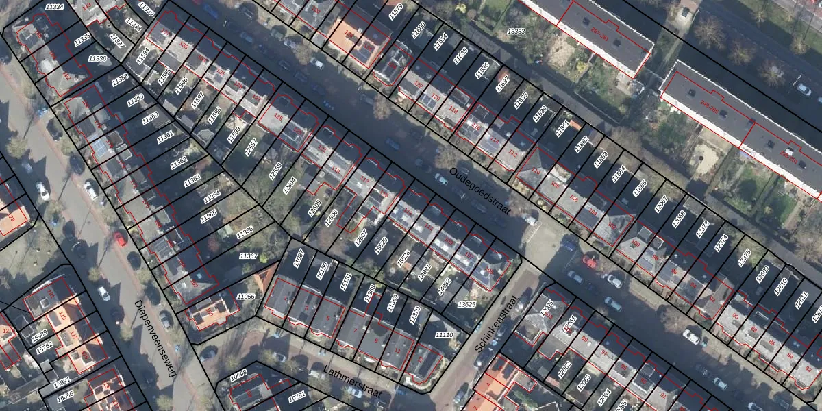 Het perceel waarop Oudegoedstraat 113 staat heeft een oppervlakte van 165 m². Dit is een middelgroot perceel. De perceeloppervlakte wordt geregistreerd door het Kadaster. Gedetailleerde informatie over de maten van dit perceel kunt u vinden in het rapport Kadastrale kaart met maatvoering van Oudegoedstraat 113.