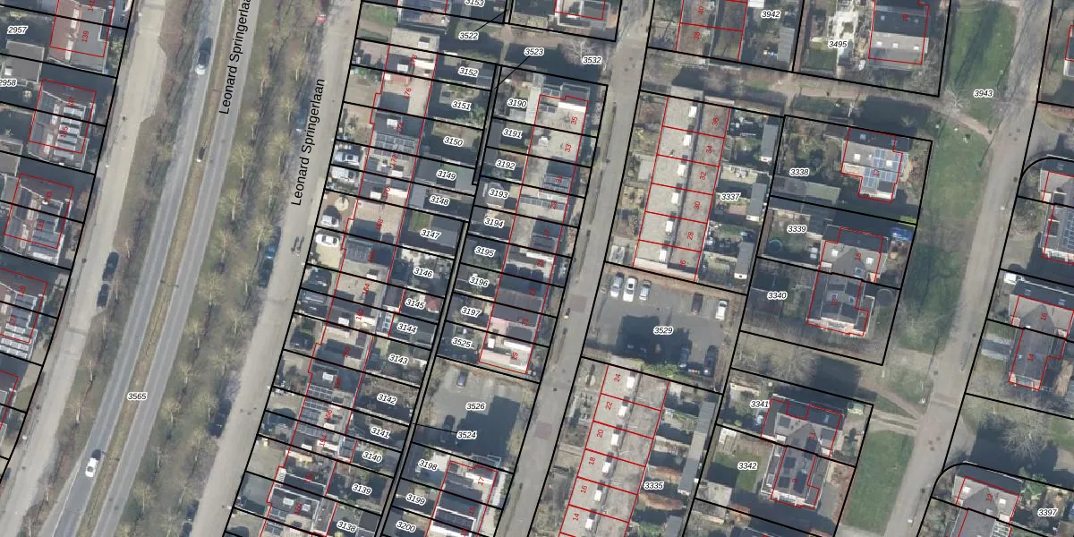 Gebruik de zoekbalk of klik op een perceel voor informatie over de adressen binnen dit perceel.