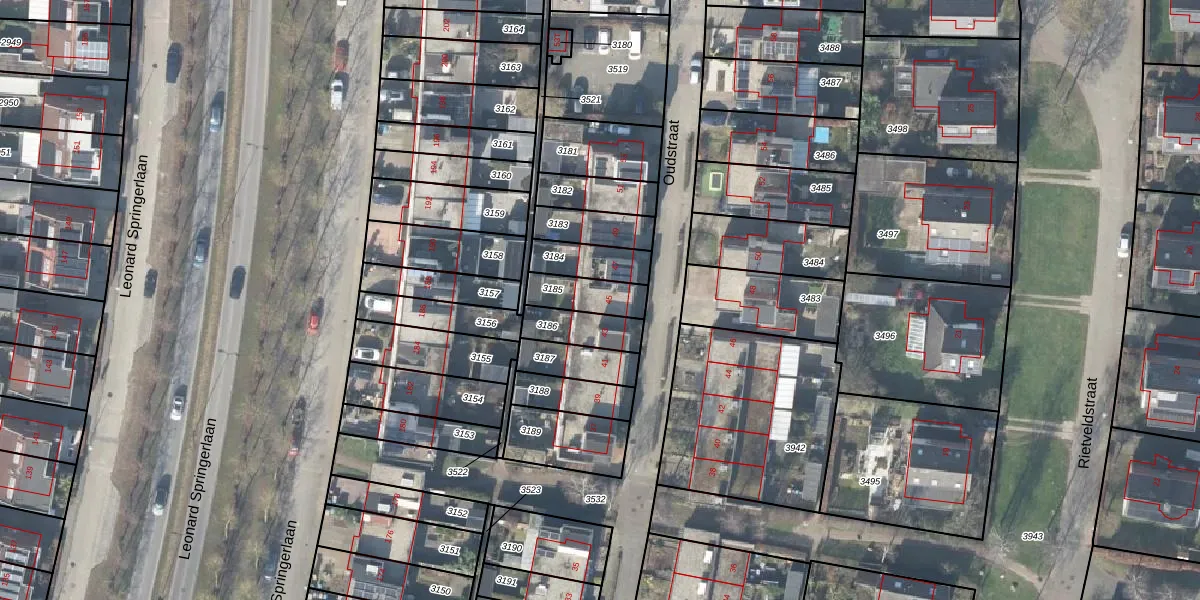 Gebruik de zoekbalk of klik op een perceel voor informatie over de adressen binnen dit perceel.