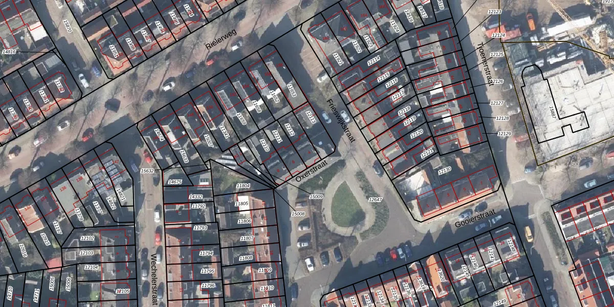 Gebruik de zoekbalk of klik op een perceel voor informatie over de adressen binnen dit perceel.