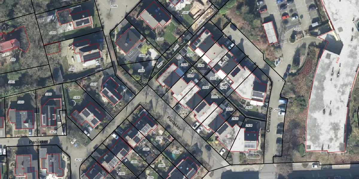 Gebruik de zoekbalk of klik op een perceel voor informatie over de adressen binnen dit perceel.