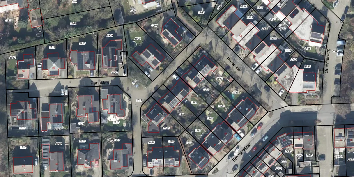 Gebruik de zoekbalk of klik op een perceel voor informatie over de adressen binnen dit perceel.