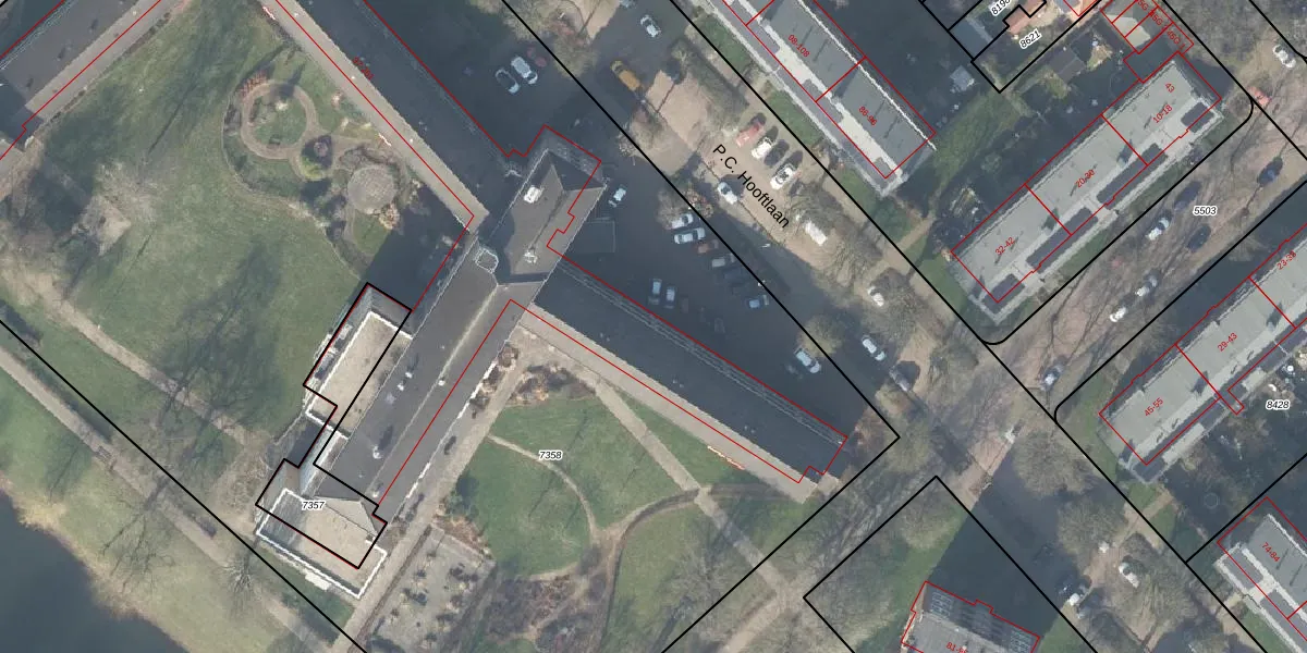 Het perceel waarop P.C. Hooftlaan 111 staat heeft een oppervlakte van 1,2 ha. Dit is een zeer groot perceel. De perceeloppervlakte wordt geregistreerd door het Kadaster. Gedetailleerde informatie over de maten van dit perceel kunt u vinden in het rapport Kadastrale kaart met maatvoering van P.C. Hooftlaan 111.