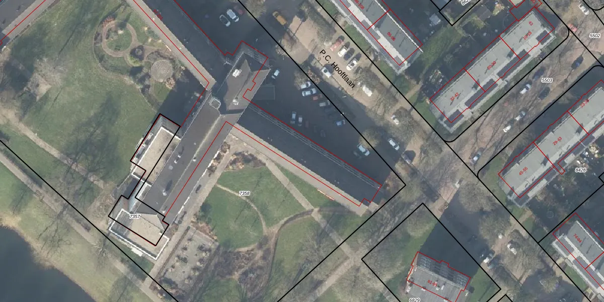 Het perceel waarop P.C. Hooftlaan 125 staat heeft een oppervlakte van 1,2 ha. Dit is een zeer groot perceel. De perceeloppervlakte wordt geregistreerd door het Kadaster. Gedetailleerde informatie over de maten van dit perceel kunt u vinden in het rapport Kadastrale kaart met maatvoering van P.C. Hooftlaan 125.