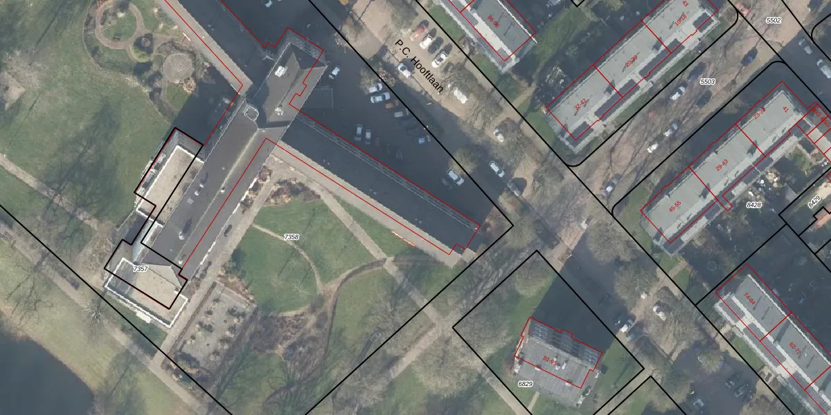Het perceel waarop P.C. Hooftlaan 129 staat heeft een oppervlakte van 1,2 ha. Dit is een zeer groot perceel. De perceeloppervlakte wordt geregistreerd door het Kadaster. Gedetailleerde informatie over de maten van dit perceel kunt u vinden in het rapport Kadastrale kaart met maatvoering van P.C. Hooftlaan 129.