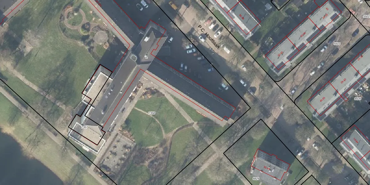 Het perceel waarop P.C. Hooftlaan 143 staat heeft een oppervlakte van 1,2 ha. Dit is een zeer groot perceel. De perceeloppervlakte wordt geregistreerd door het Kadaster. Gedetailleerde informatie over de maten van dit perceel kunt u vinden in het rapport Kadastrale kaart met maatvoering van P.C. Hooftlaan 143.