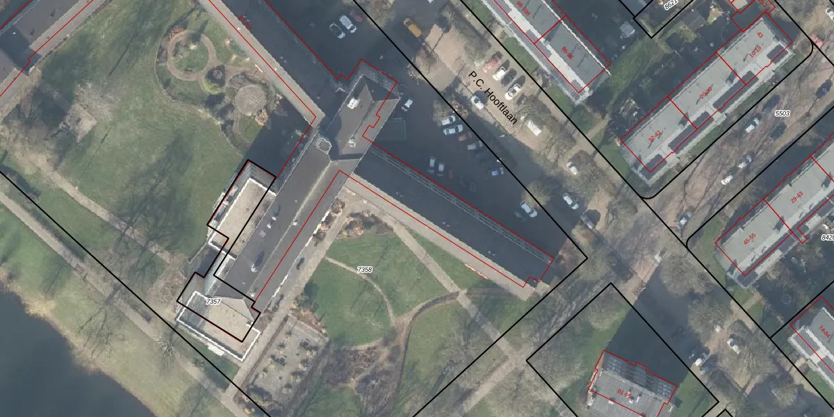 Het perceel waarop P.C. Hooftlaan 145 staat heeft een oppervlakte van 1,2 ha. Dit is een zeer groot perceel. De perceeloppervlakte wordt geregistreerd door het Kadaster. Gedetailleerde informatie over de maten van dit perceel kunt u vinden in het rapport Kadastrale kaart met maatvoering van P.C. Hooftlaan 145.