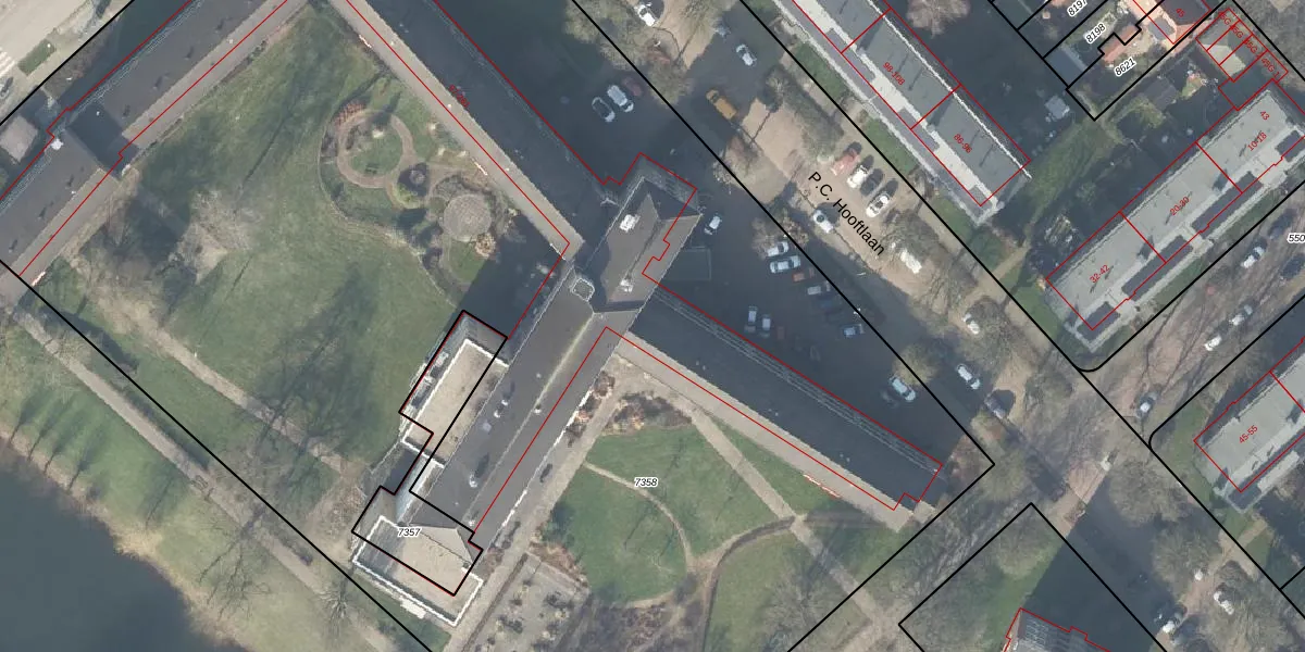 Het perceel waarop P.C. Hooftlaan 151 staat heeft een oppervlakte van 1,2 ha. Dit is een zeer groot perceel. De perceeloppervlakte wordt geregistreerd door het Kadaster. Gedetailleerde informatie over de maten van dit perceel kunt u vinden in het rapport Kadastrale kaart met maatvoering van P.C. Hooftlaan 151.