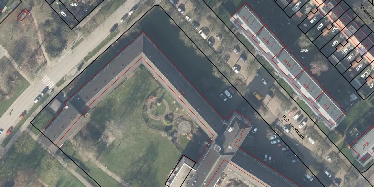 Het perceel waarop P.C. Hooftlaan 179 staat heeft een oppervlakte van 1,2 ha. Dit is een zeer groot perceel. De perceeloppervlakte wordt geregistreerd door het Kadaster. Gedetailleerde informatie over de maten van dit perceel kunt u vinden in het rapport Kadastrale kaart met maatvoering van P.C. Hooftlaan 179.