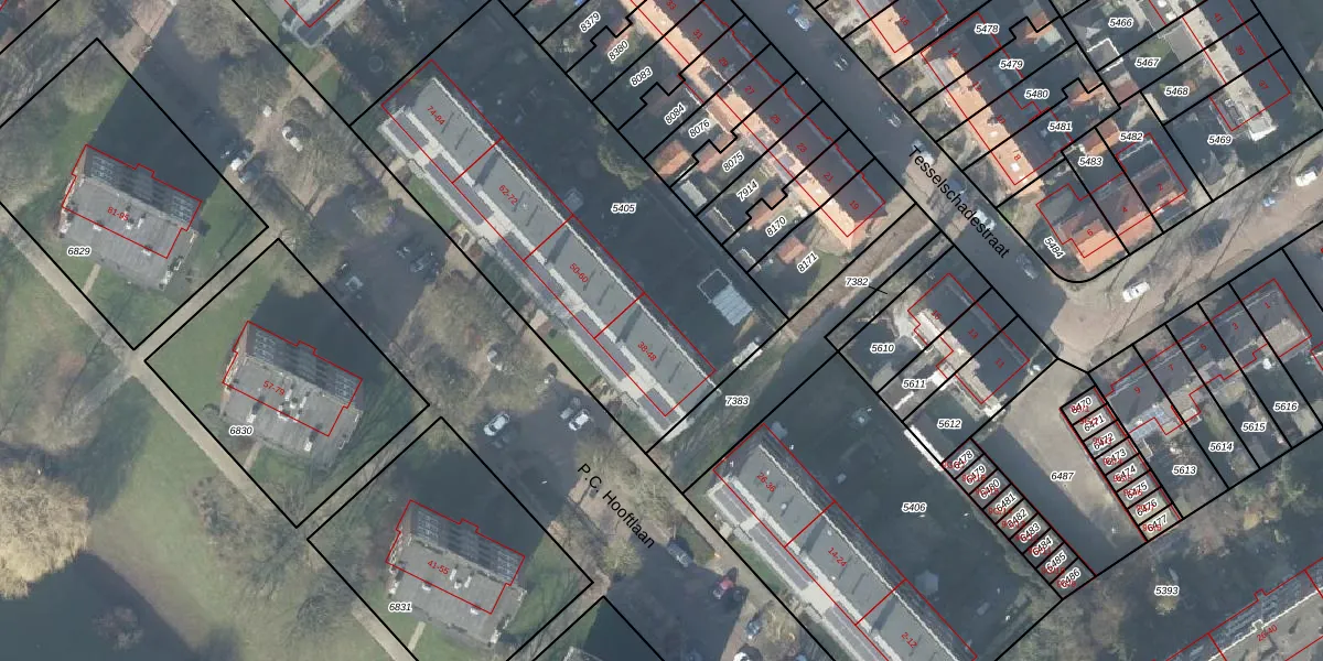P.C. Hooftlaan 44 is gelegen op kadastraal perceel DVT00A5405. Deze kadastrale aanduiding is uniek en wordt gebruikt door het Kadaster om eigendomsrechten en andere zakelijke rechten vast te leggen. Het perceel maakt onderdeel uit van de kadastrale gemeente Deventer.