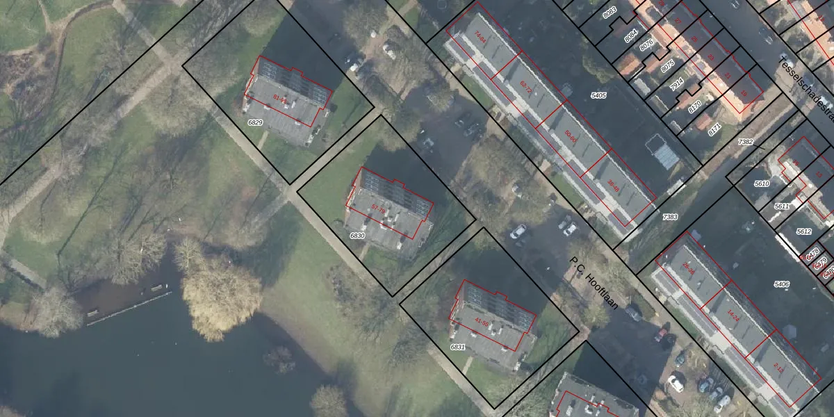 Het perceel waarop P.C. Hooftlaan 57 staat heeft een oppervlakte van 933 m². Dit is een groot perceel. De perceeloppervlakte wordt geregistreerd door het Kadaster. Gedetailleerde informatie over de maten van dit perceel kunt u vinden in het rapport Kadastrale kaart met maatvoering van P.C. Hooftlaan 57.