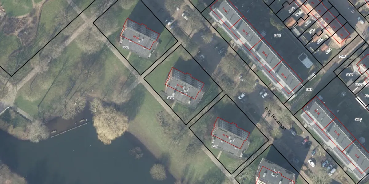Het perceel waarop P.C. Hooftlaan 67 staat heeft een oppervlakte van 933 m². Dit is een groot perceel. De perceeloppervlakte wordt geregistreerd door het Kadaster. Gedetailleerde informatie over de maten van dit perceel kunt u vinden in het rapport Kadastrale kaart met maatvoering van P.C. Hooftlaan 67.