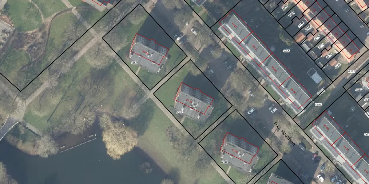 Het perceel waarop P.C. Hooftlaan 77 staat heeft een oppervlakte van 933 m². Dit is een groot perceel. De perceeloppervlakte wordt geregistreerd door het Kadaster. Gedetailleerde informatie over de maten van dit perceel kunt u vinden in het rapport Kadastrale kaart met maatvoering van P.C. Hooftlaan 77.