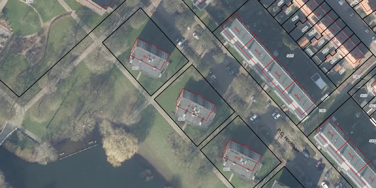 Het perceel waarop P.C. Hooftlaan 79 staat heeft een oppervlakte van 933 m². Dit is een groot perceel. De perceeloppervlakte wordt geregistreerd door het Kadaster. Gedetailleerde informatie over de maten van dit perceel kunt u vinden in het rapport Kadastrale kaart met maatvoering van P.C. Hooftlaan 79.
