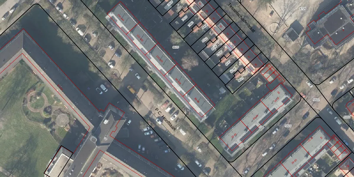 Het perceel waarop P.C. Hooftlaan 98 staat heeft een oppervlakte van 5752 m². Dit is een zeer groot perceel. De perceeloppervlakte wordt geregistreerd door het Kadaster. Gedetailleerde informatie over de maten van dit perceel kunt u vinden in het rapport Kadastrale kaart met maatvoering van P.C. Hooftlaan 98.