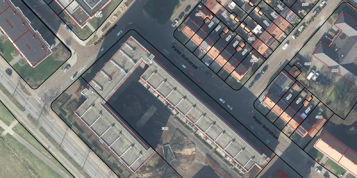 Het perceel waarop Pieter Bothstraat 107 staat heeft een oppervlakte van 4816 m². Dit is een zeer groot perceel. De perceeloppervlakte wordt geregistreerd door het Kadaster. Gedetailleerde informatie over de maten van dit perceel kunt u vinden in het rapport Kadastrale kaart met maatvoering van Pieter Bothstraat 107.