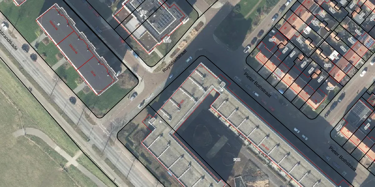 Het perceel waarop Pieter Bothstraat 315 staat heeft een oppervlakte van 4816 m². Dit is een zeer groot perceel. De perceeloppervlakte wordt geregistreerd door het Kadaster. Gedetailleerde informatie over de maten van dit perceel kunt u vinden in het rapport Kadastrale kaart met maatvoering van Pieter Bothstraat 315.
