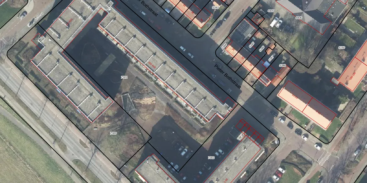 Het perceel waarop Pieter Bothstraat 405 staat heeft een oppervlakte van 4816 m². Dit is een zeer groot perceel. De perceeloppervlakte wordt geregistreerd door het Kadaster. Gedetailleerde informatie over de maten van dit perceel kunt u vinden in het rapport Kadastrale kaart met maatvoering van Pieter Bothstraat 405.