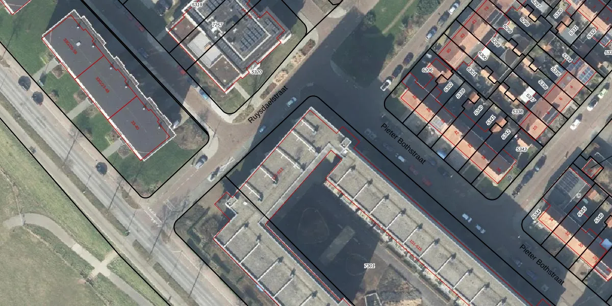 Het perceel waarop Pieter Bothstraat 413 staat heeft een oppervlakte van 4816 m². Dit is een zeer groot perceel. De perceeloppervlakte wordt geregistreerd door het Kadaster. Gedetailleerde informatie over de maten van dit perceel kunt u vinden in het rapport Kadastrale kaart met maatvoering van Pieter Bothstraat 413.