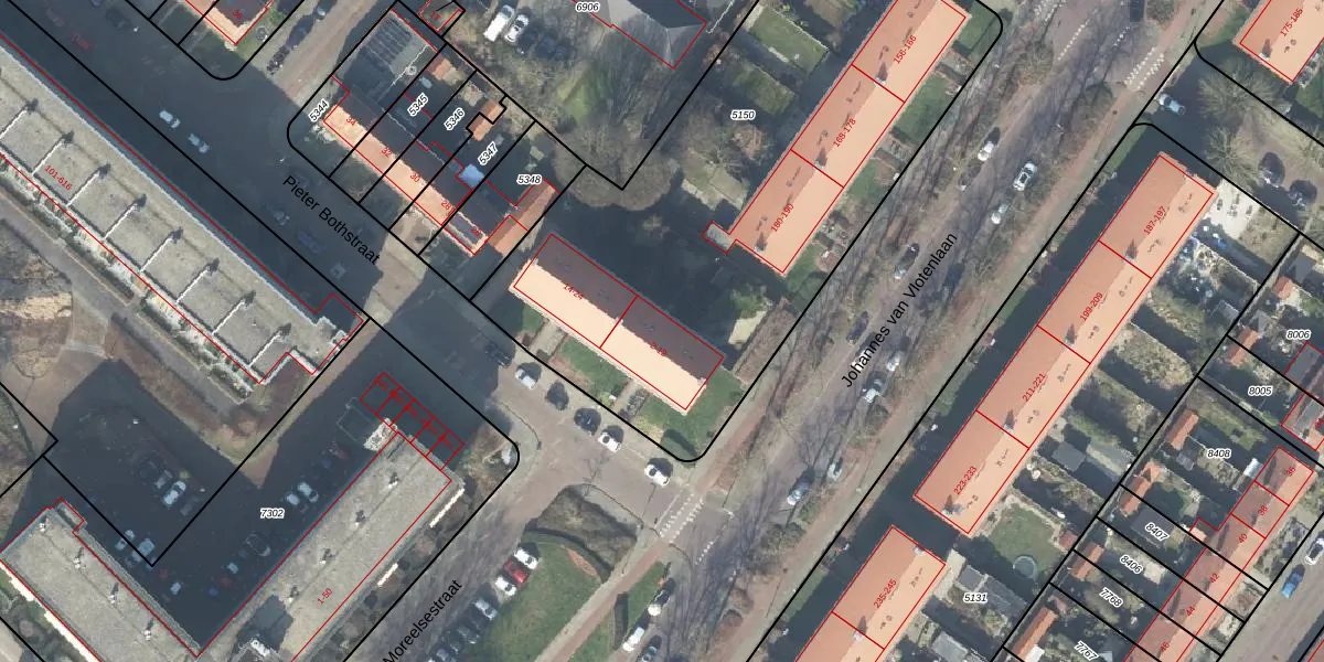 Het perceel waarop Pieter Bothstraat 8 staat heeft een oppervlakte van 2955 m². Dit is een zeer groot perceel. De perceeloppervlakte wordt geregistreerd door het Kadaster. Gedetailleerde informatie over de maten van dit perceel kunt u vinden in het rapport Kadastrale kaart met maatvoering van Pieter Bothstraat 8.