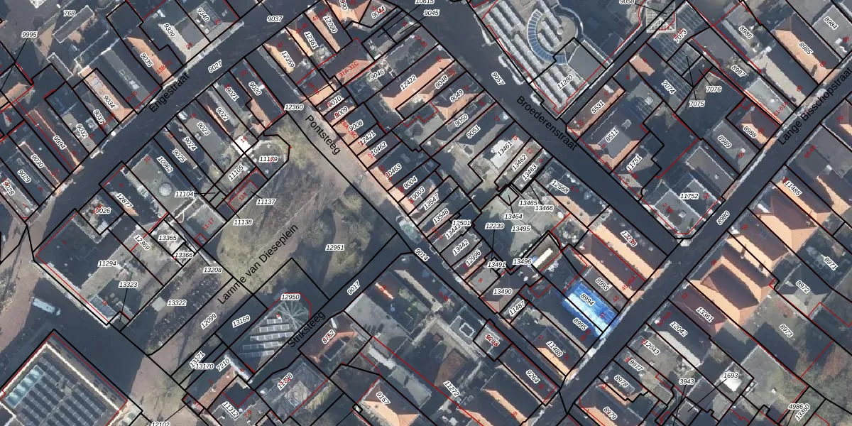 Het perceel waarop Pontsteeg 16 staat heeft een oppervlakte van 44 m². Dit is een klein perceel. De perceeloppervlakte wordt geregistreerd door het Kadaster. Gedetailleerde informatie over de maten van dit perceel kunt u vinden in het rapport Kadastrale kaart met maatvoering van Pontsteeg 16.