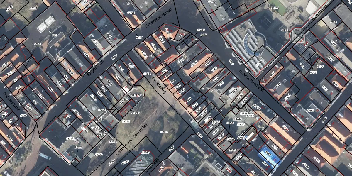 Het perceel waarop Pontsteeg 26 staat heeft een oppervlakte van 29 m². Dit is een klein perceel. De perceeloppervlakte wordt geregistreerd door het Kadaster. Gedetailleerde informatie over de maten van dit perceel kunt u vinden in het rapport Kadastrale kaart met maatvoering van Pontsteeg 26.