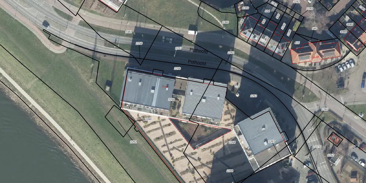 Het perceel waarop Pothoofd 26 staat heeft een oppervlakte van 5693 m². Dit is een zeer groot perceel. De perceeloppervlakte wordt geregistreerd door het Kadaster. Gedetailleerde informatie over de maten van dit perceel kunt u vinden in het rapport Kadastrale kaart met maatvoering van Pothoofd 26.