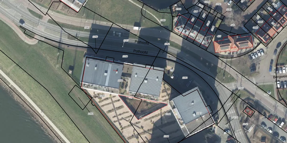 Het perceel waarop Pothoofd 28 staat heeft een oppervlakte van 5693 m². Dit is een zeer groot perceel. De perceeloppervlakte wordt geregistreerd door het Kadaster. Gedetailleerde informatie over de maten van dit perceel kunt u vinden in het rapport Kadastrale kaart met maatvoering van Pothoofd 28.