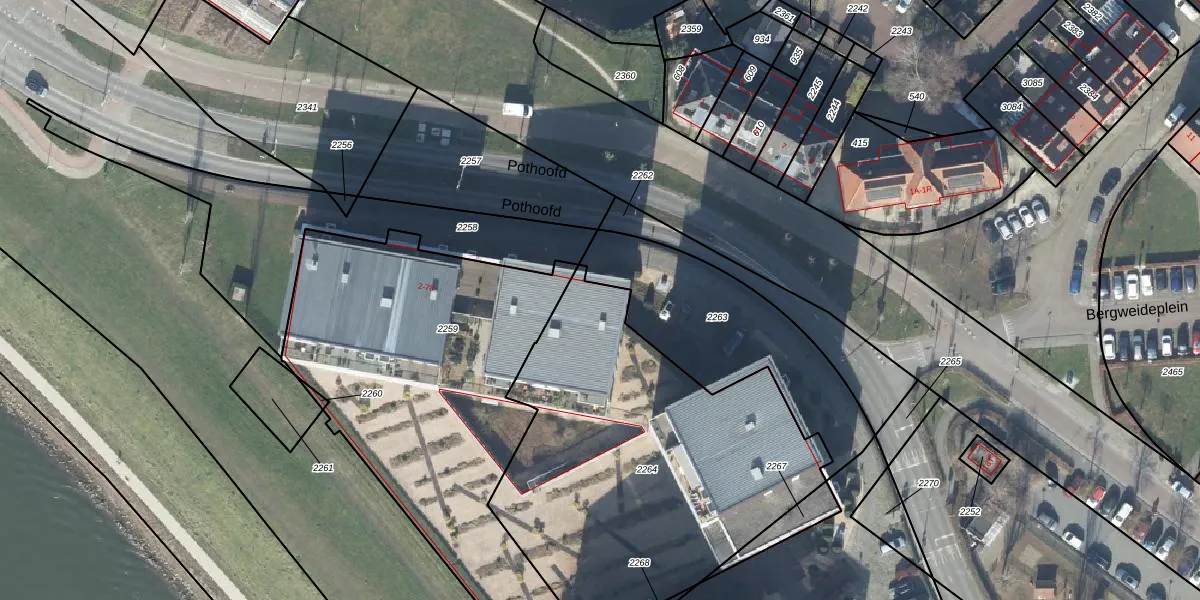 Het perceel waarop Pothoofd 30 staat heeft een oppervlakte van 1958 m². Dit is een zeer groot perceel. De perceeloppervlakte wordt geregistreerd door het Kadaster. Gedetailleerde informatie over de maten van dit perceel kunt u vinden in het rapport Kadastrale kaart met maatvoering van Pothoofd 30.