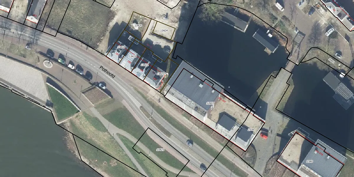 Het perceel waarop Pothoofd 303 staat heeft een oppervlakte van 892 m². Dit is een groot perceel. De perceeloppervlakte wordt geregistreerd door het Kadaster. Gedetailleerde informatie over de maten van dit perceel kunt u vinden in het rapport Kadastrale kaart met maatvoering van Pothoofd 303.